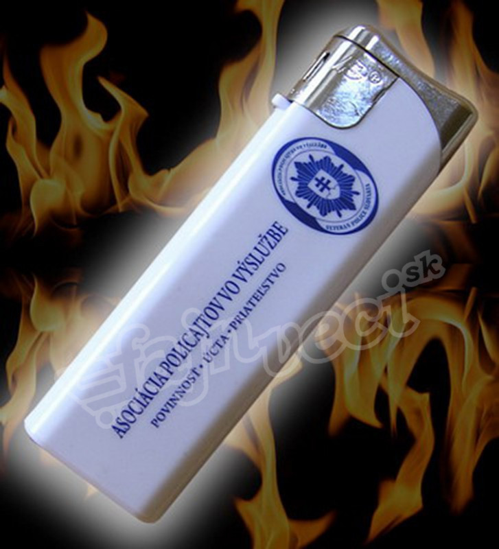 biely plastový zapaľovač s novým logom APVV