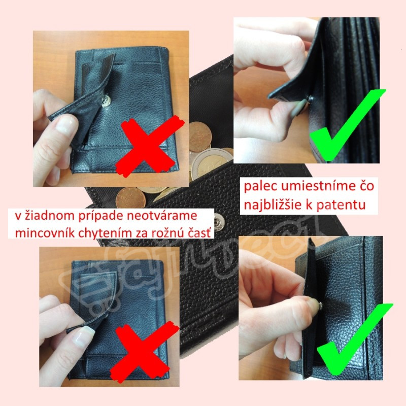 1x otvor pre odznak, 1x mincovník zo zadnej strany peňaženky