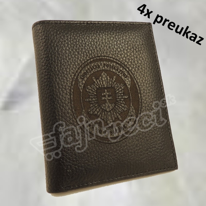 obal so štyrmi priečinkami na preukaz s vygravírovaným logom APVV a s priečinkom na papierové peniaze