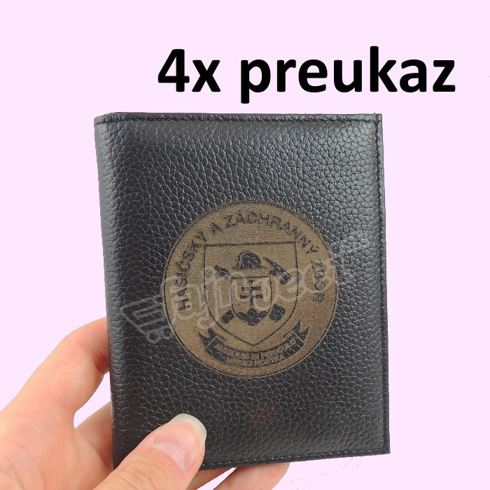 obal so štyrmi priečinkami na preukaz s vygravírovaným logom HZ LAT a s priečinkom na papierové peniaze