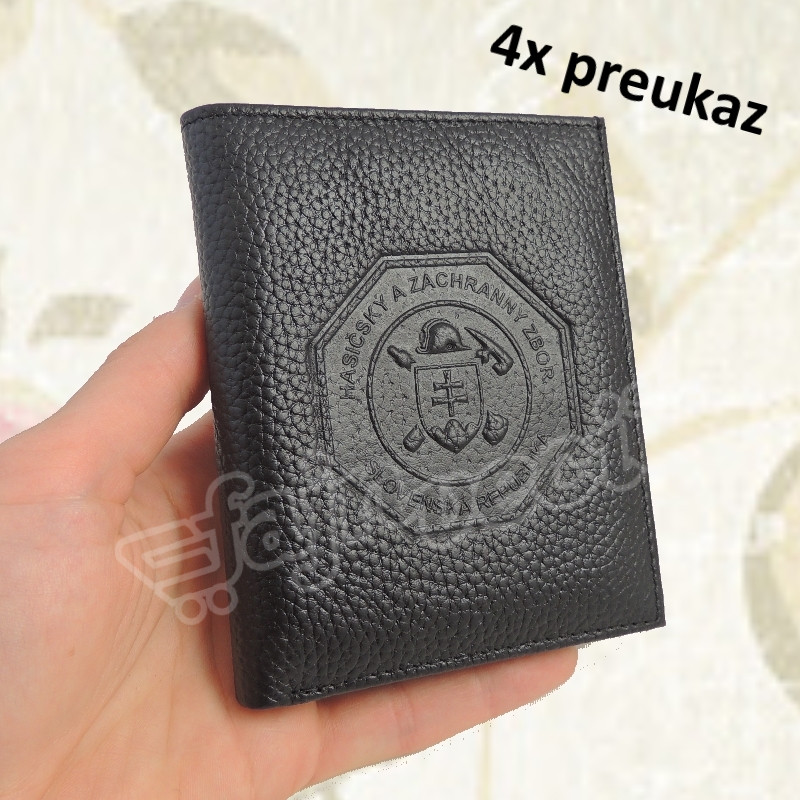 obal so štyrmi priečinkami na preukaz s logom HZ a s priečinkom na papierové peniaze