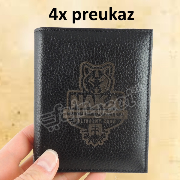 obal so štyrmi priečinkami na preukaz s logom NAKA a s priečinkom na papierové peniaze