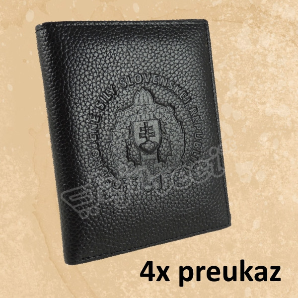 obal so štyrmi priečinkami na preukaz s logom OSSR a s priečinkom na papierové peniaze