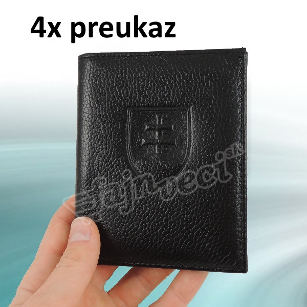 obal so štyrmi priečinkami na preukaz so znakom SR a s priečinkom na papierové peniaze