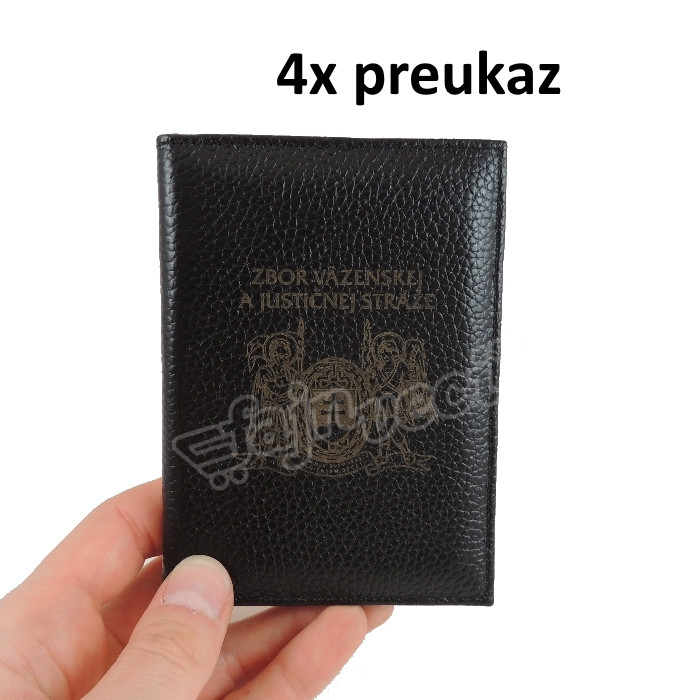 obal so štyrmi priečinkami na preukaz s vygravírovaným logom ZVJS anjel a s priečinkom na papierové peniaze