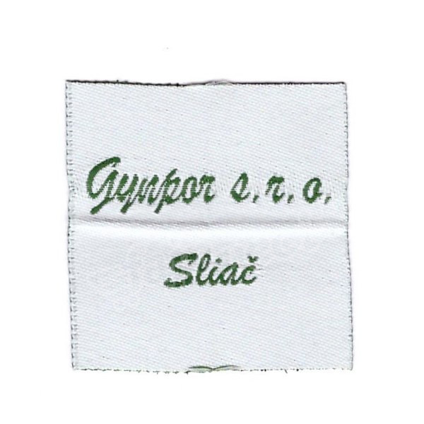 biela vytkavana etiketa, písmo zelené rozmer etikety: 4x4cm