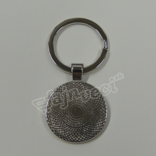 na jednej strane kľúčenky nalepená živicová nálepka