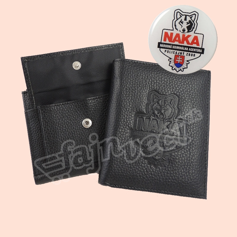 peňaženka na doklady a peniaze s logom NAKA, s výrezom a mincovníkom, vyrobená z kvalitnej kravskej kože