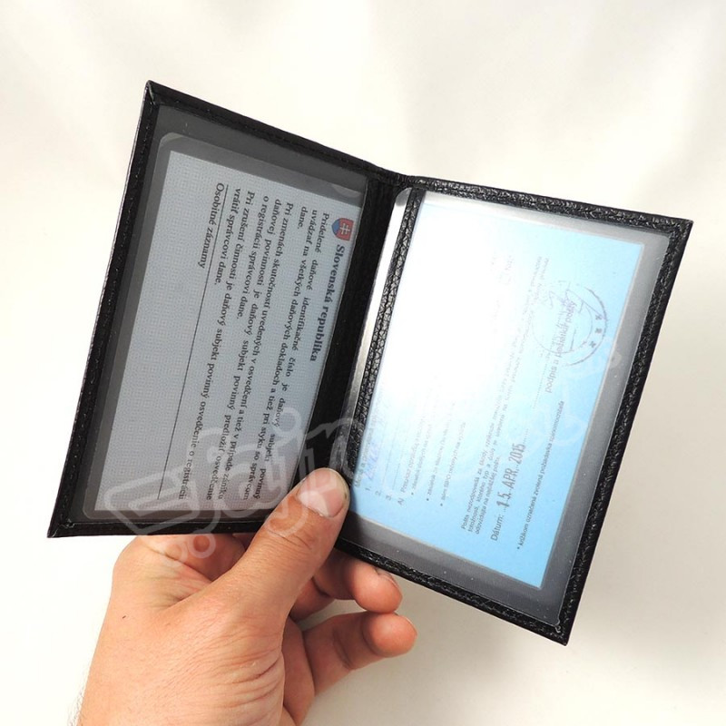 kožený obal s dvoma priesvitnými priečinkami na preukaz