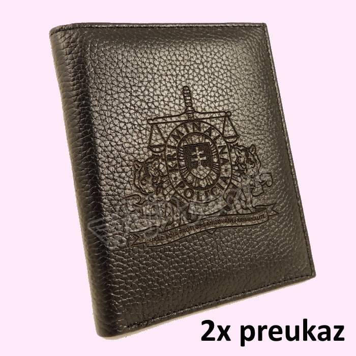 kožený obal s vygravírovaným logom kriminálnej PZ a s dvoma priečinkami na preukaz