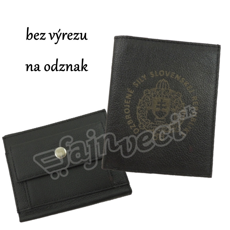 zvrchu je vygravírované logo OSSR<br> <pozor>peňaženka <u>NEOBSAHUJE</u> vyrezané miesto na odznak/ nálepku</pozor><br> <pozor>peňaženka <u>OBSAHUJE</u> mincovník</pozor>