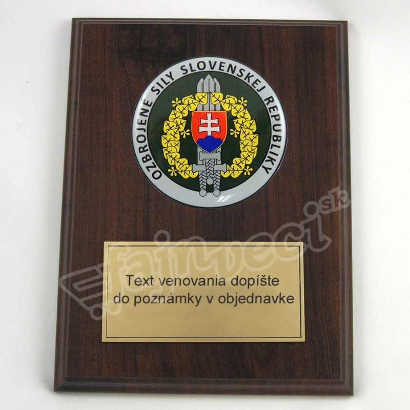 plaketa sa skladá z hliníkovej doštičky (zlatá farba) s venovaním