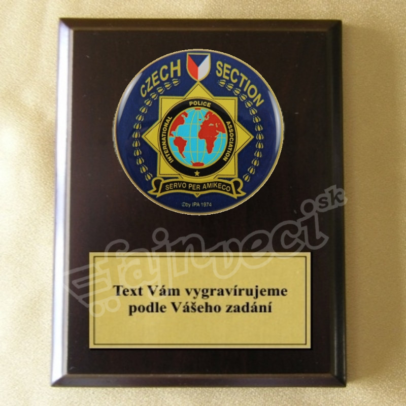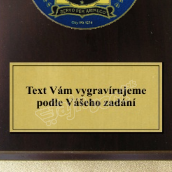 plaketa se skládá z hliníkové destičky (zlatá barva) s věnováním,