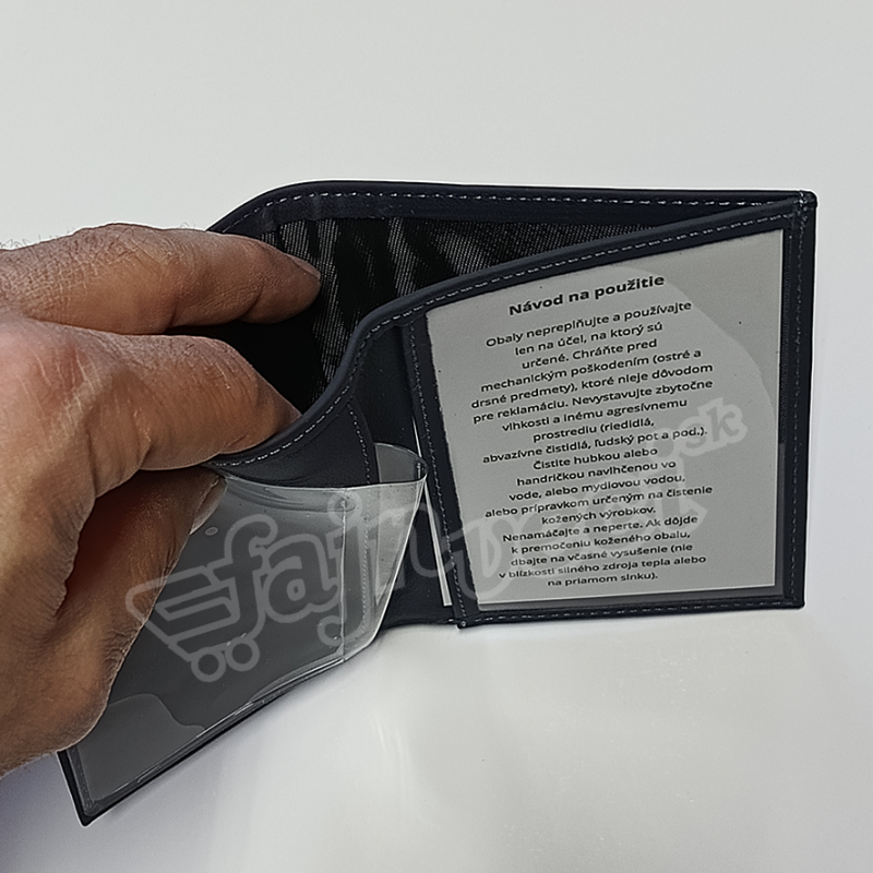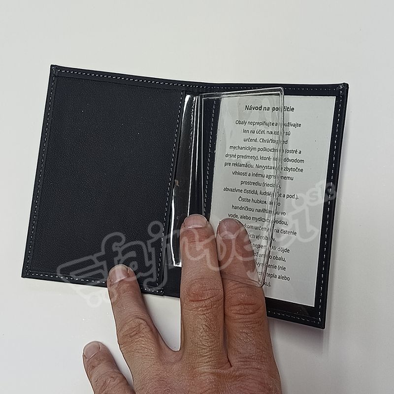 2x vyberateľná priehľadná vložka na doklady (možnosť vložiť preukaz max 9x6,5cm)