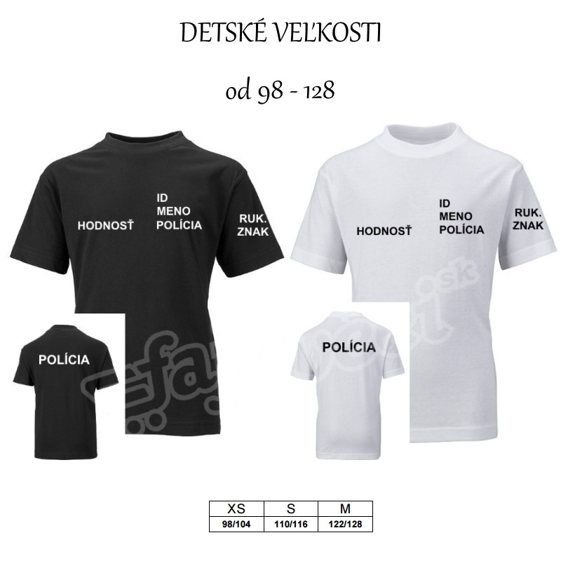 tričko obsahuje 2x flex POLÍCIA srdce a chrbát