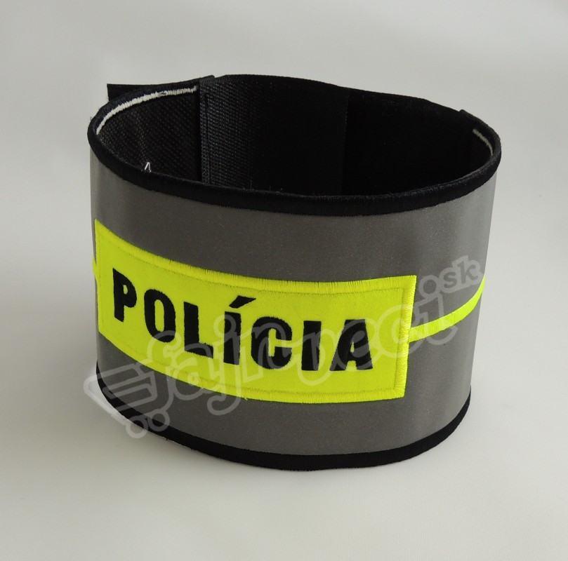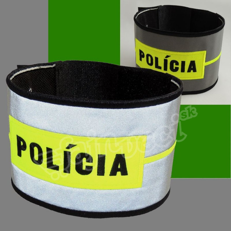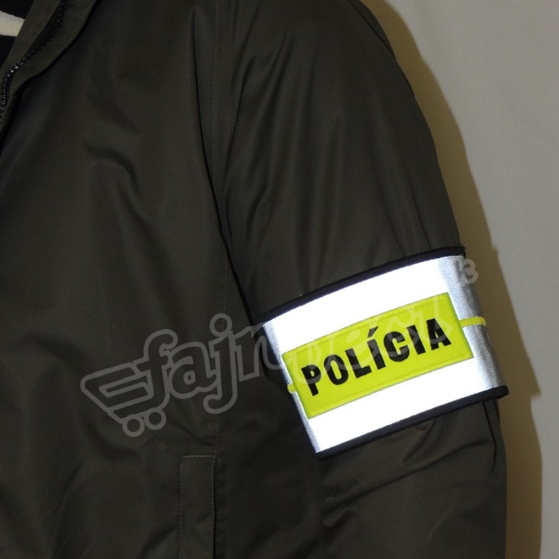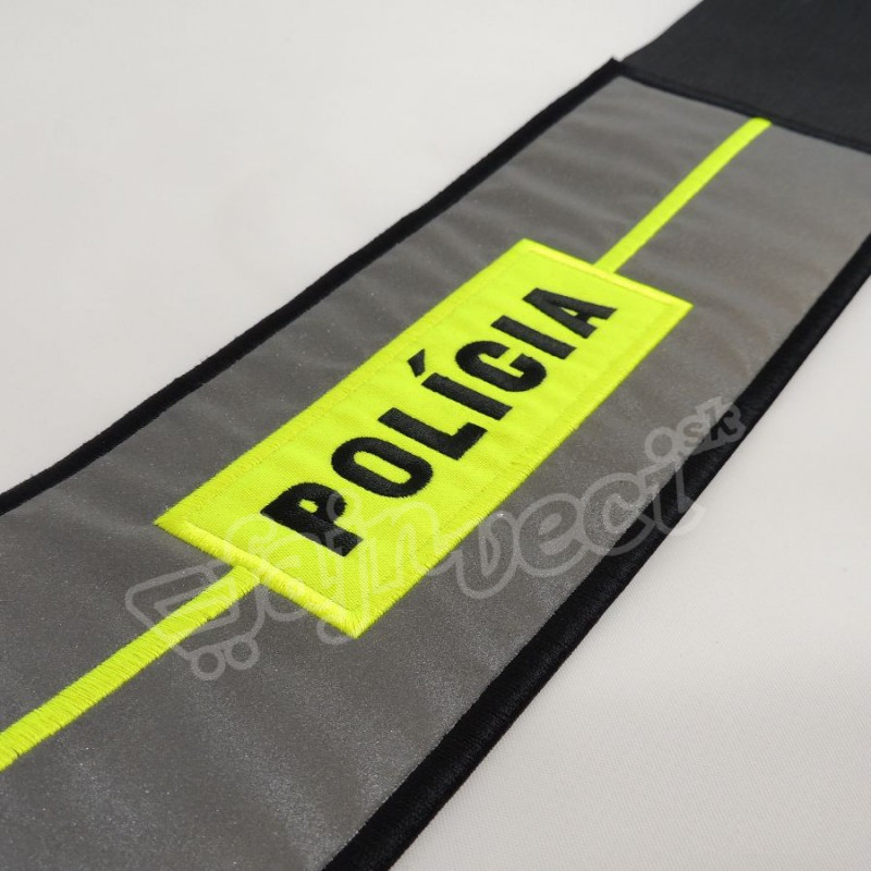 v reflexnom poli potlačený nápis POLÍCIA na neónovom podklade