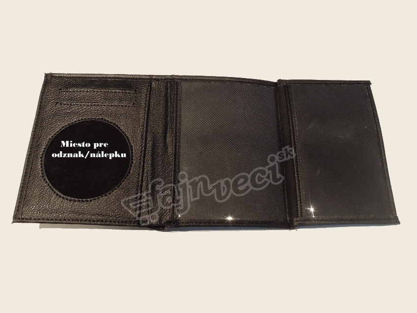 1 x Security logo a 1 x veľký nápis SECURITY v zlatej farbe<br> <pozor>peňaženka <u>OBSAHUJE</u> vyrezané miesto na odznak/ nálepku</pozor><br> <pozor>odznak, nálepku si je treba objednať samostatne!</pozor><br> <pozor>peňaženka <u>NEOBSAHUJE</u> mincovník</pozor>