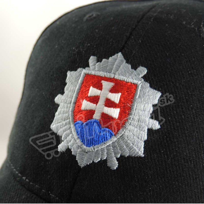 vyšité strieborné logo PZ SR a po stranách nápis Polícia
