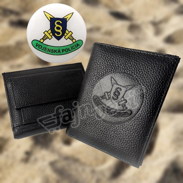 peňaženka na doklady a peniaze s logom VOP, s výrezom a mincovníkom, vyrobená z kvalitnej kravskej kože